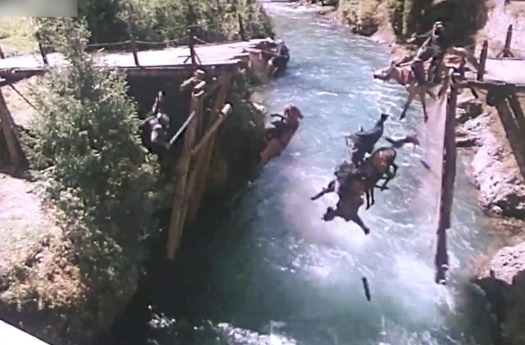 塞夫麦丽丝的影片具有强烈的视觉冲击力,构筑起一系列的视觉奇观,其中“断桥坠马”的桥段更是堪称经典。另外,在影片的结尾处,东归图被毁,阿拉坦桑身负重伤,临死前,他把匕首交给女儿,告诉她,真正的东归图就纹在自己的后背上,这一剧情的反转,营造出了令人叹为观止的影像奇观。