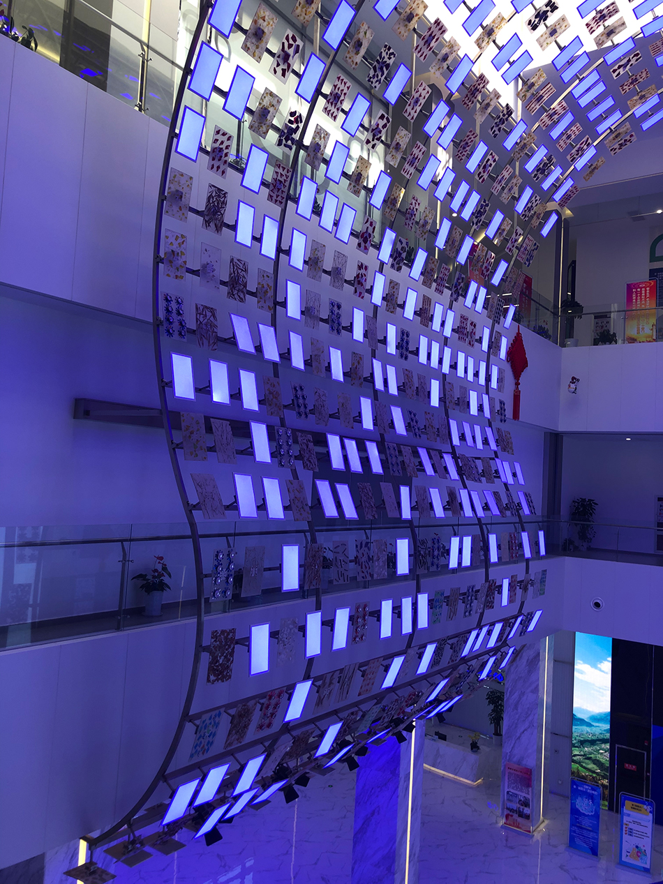 科普大厅的亮化装饰为玻璃、瓶罐等废弃物再利用而来