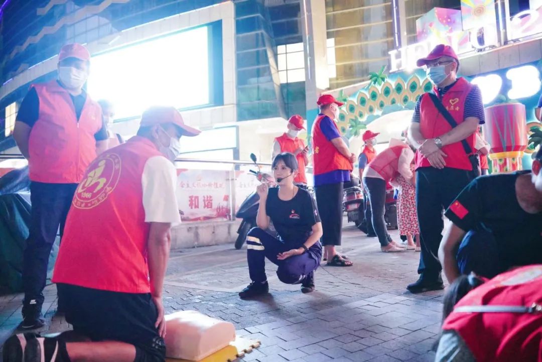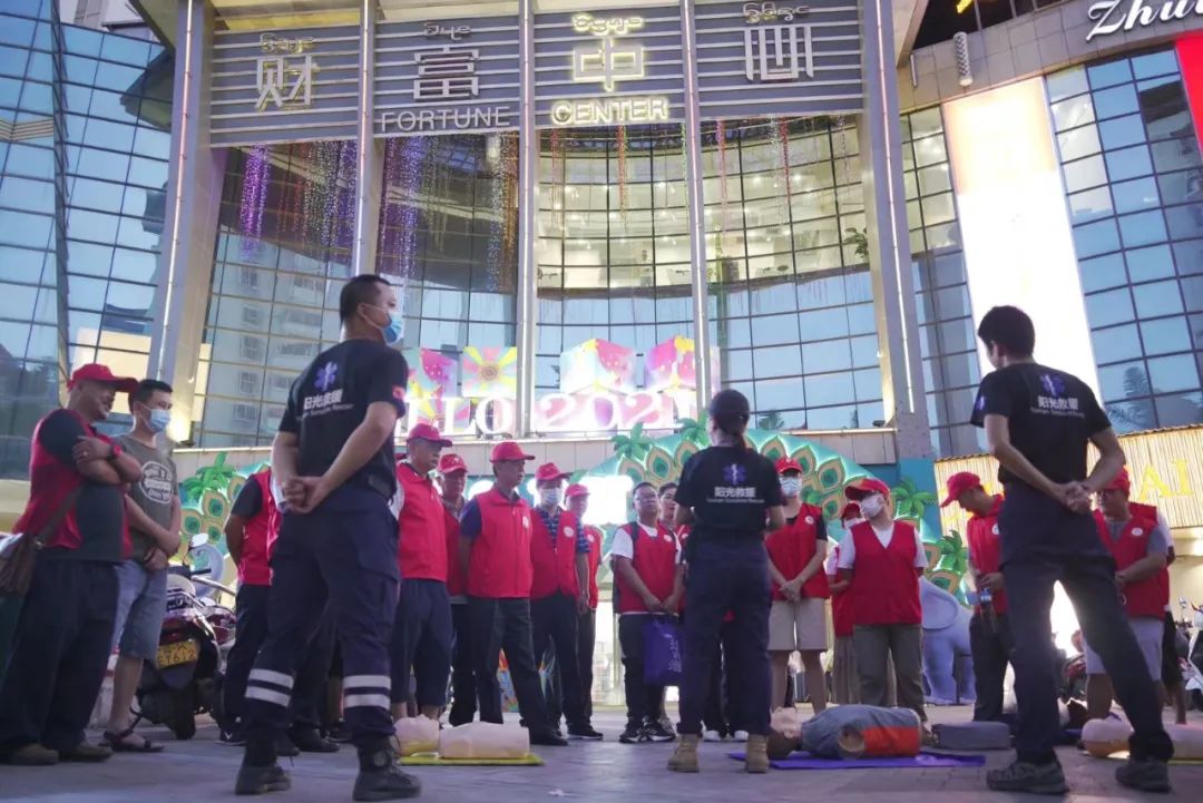 图2 社会人员积极参与活动一堂生动的急救课吸引了不少广场路过市民的围观,阳光救援队队员们为市民们详细教授了心肺复苏、外伤急救、海姆立克急救法等常用急救技能,队员们用清晰的口令、通俗易懂的讲解,使市民通过现场观摩了解规范的急救知识。西双版纳阳光救援队队长龚旭寅说:“我们是以救援队专业教官团队为骨干的阳光应急志愿者队伍,队员们80%取得了中国红十字会讲师资格证。下一步我们准备面向全版纳公开招募应急志愿者,希望通过我们这个阳光救援队平台,让更多志愿者学到技能、掌握技能。”