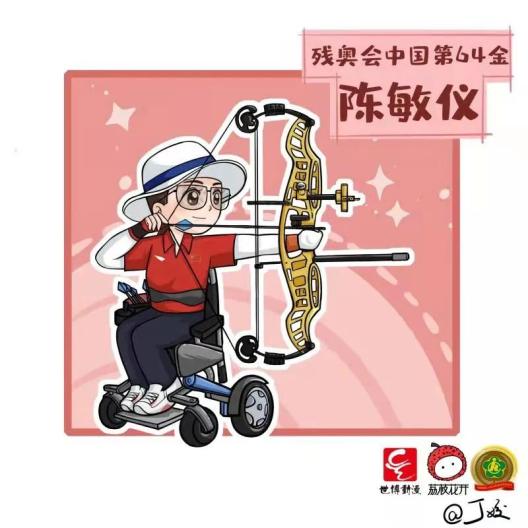 # 人物事迹 #中国选手陈敏仪于9月1日在东京残奥会射箭项目女子W1级复合弓个人赛中以142:131战胜捷克选手,获得冠军,并打破残奥会纪录。这是陈敏仪在本届残奥会获得的第二枚金牌,此前她在8月28日的混合W1级复合弓团体赛中,与队友张天鑫以138:132的成绩战胜捷克队,夺得金牌。