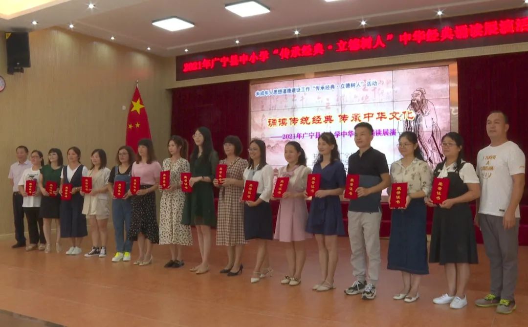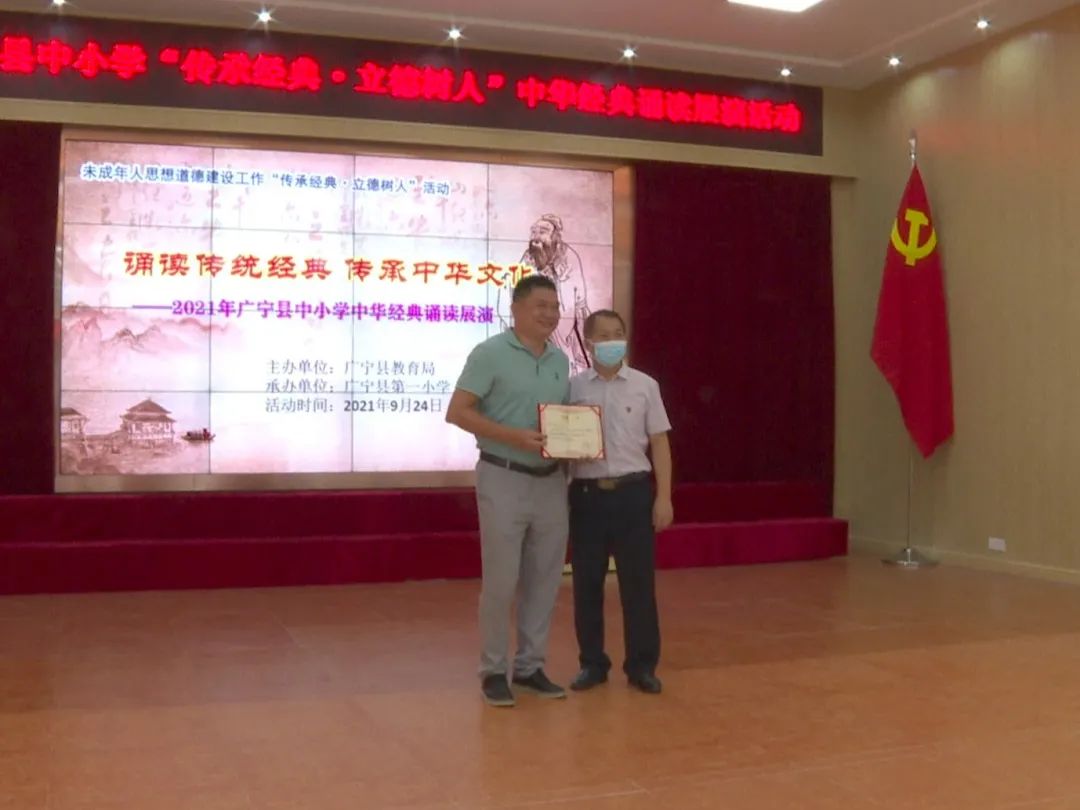 据了解,本次诵读展演共有8所学校参加比赛,经过激烈的角逐,最终,广宁县第一小学荣获特等奖,广宁县第七小学、广宁县红军小学,广宁县第四小学荣获一等奖,广宁县城东学校等4所学校获得二等奖,活动还评出了16名优秀指导老师。