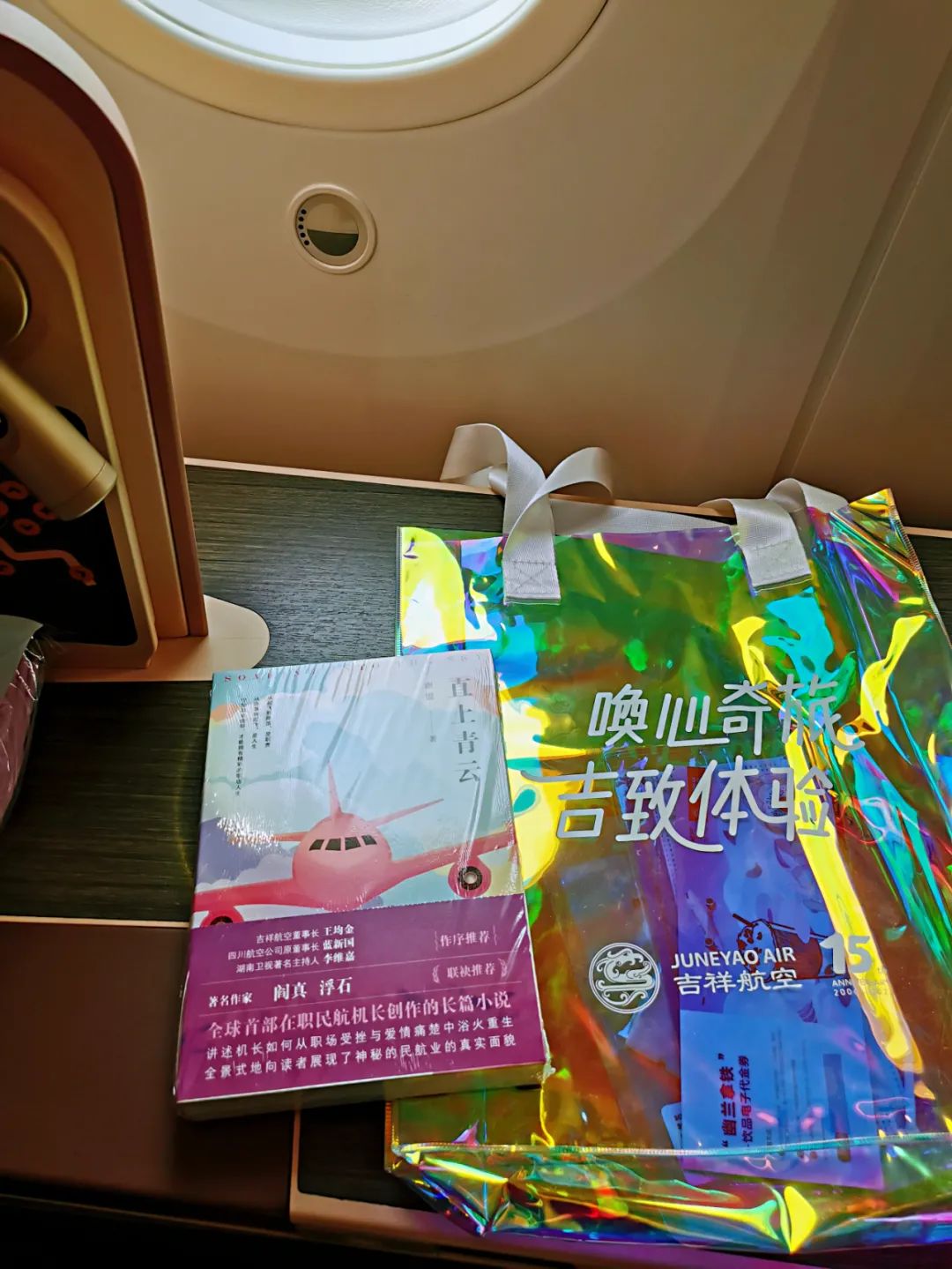 吉祥航空为旅客赠送由长沙籍的谢锟机长撰写的小说作为纪念礼品(记者钱擘/摄)