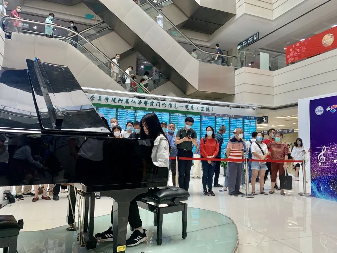 9月24日,平日里熙熙攘攘的门诊大厅里被悠扬的音乐缭绕。原来,这是我院“仁爱之家”志愿者工作部特邀上海中学国际部“乐然和睦”社团在仁济医院东院区门诊大厅进行演出,志愿者们用他们擅长的管弦乐器为门诊患者及医护人员献上了多首精彩曲目,用奏响的乐善之声,传播公益正能量,安抚了前来就诊患者及家属焦躁的情绪。
