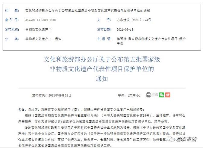 原标题:《文旅部公布第五批国家级非遗代表性项目保护单位名单》