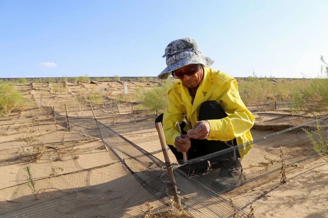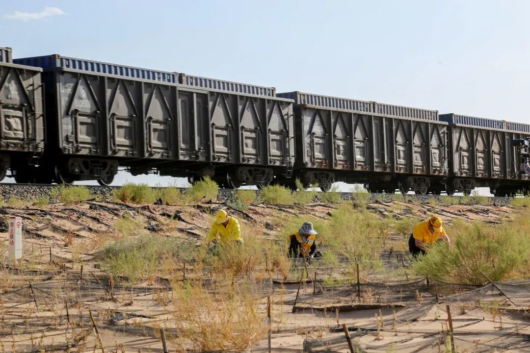 经过像他们这样的治沙工十多年的努力,临策铁路沿线共铺设了2700多万平方米防沙网格,高沙帐980多公里,绿色植被覆盖12800多亩,近几年,严重的沙害几乎没再出现过。