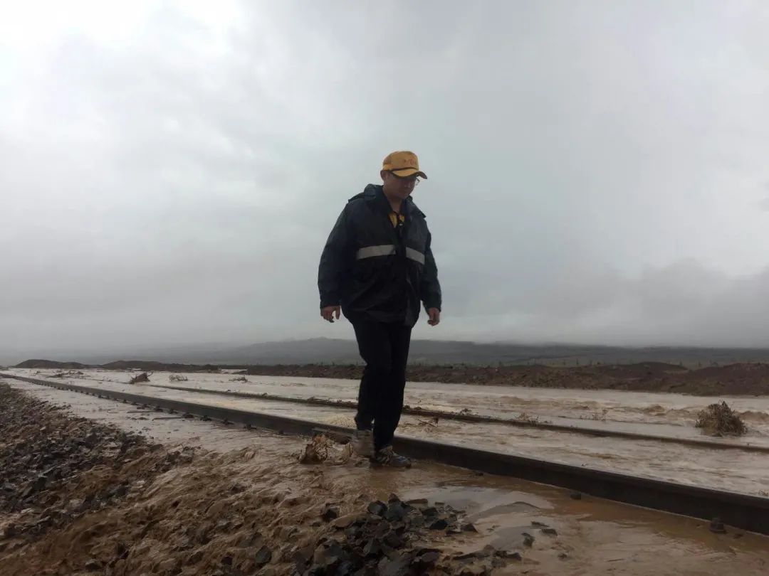 沙漠中水害突发性强,临河运营维修段职工增加雨中出巡频次,实时掌握线路情况,及时应对。