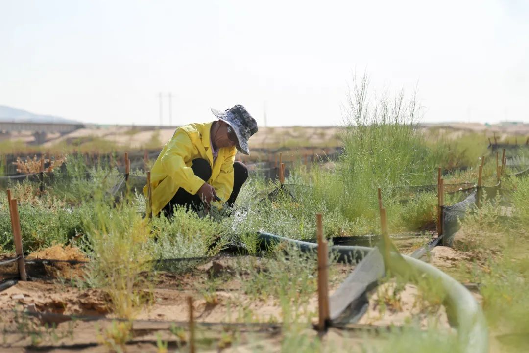 除此之外,临河运营维修段职工还会种植沙蒿、梭梭草、柠条等抗旱性高的植物固住沙土,缓解水土流失。