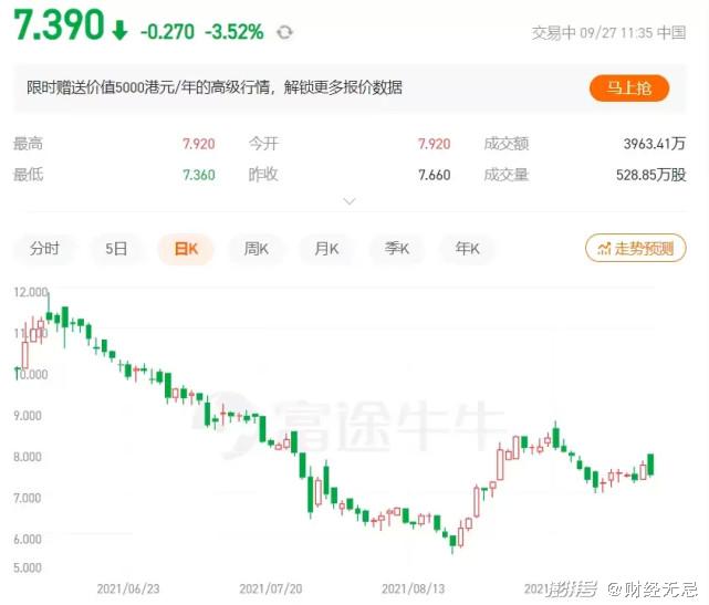 截止9月27日午间收盘,周黑鸭股价7.39港元/股,市值为175.6亿元。