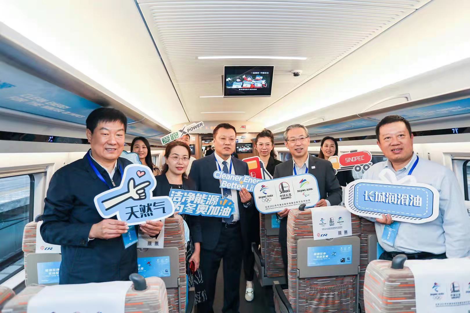 在北京2022年冬奥会开幕倒计时130天之际,9月27日,中国石化在北京北站举行以“洁净能源 为冬奥加油”为主题的冬奥高铁品牌专列首发仪式。当日上午8时18分,中国石化复兴号冬奥高铁品牌专列G2481车次从北京北站首次出发。这是中国石化打造宣传冬奥冰雪文化、传播奥林匹克精神的新窗口和新平台,将不断扩大奥林匹克文化影响力,以实际行动助力北京冬奥。