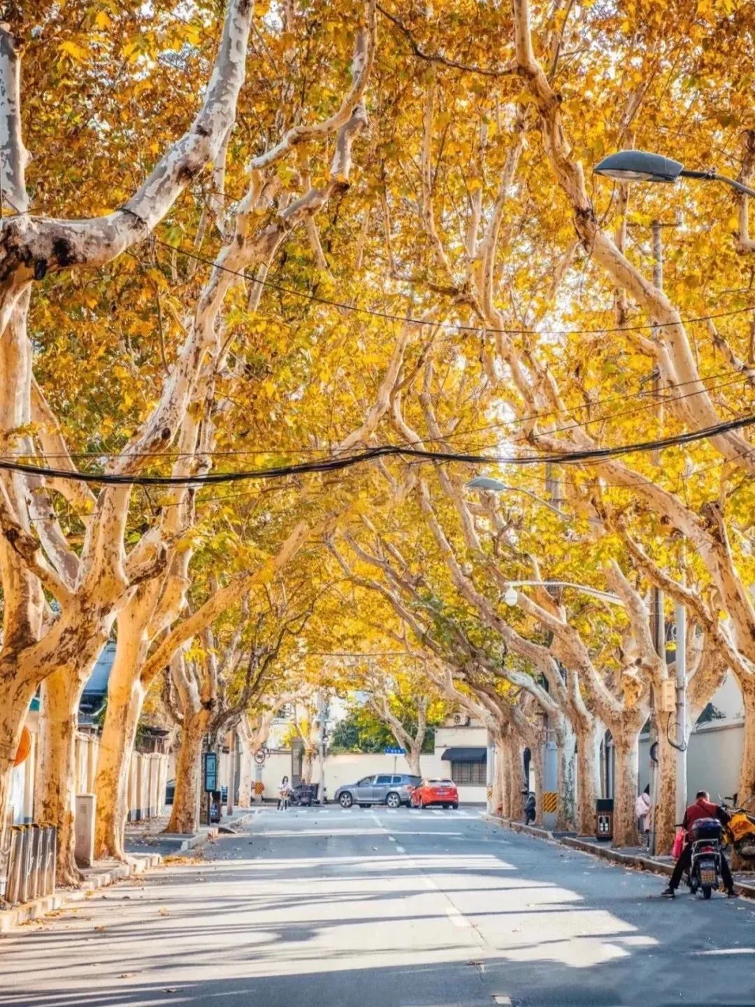 16. 秋天,上海有41条马路有落叶不扫的“特权”,梧桐树、银杏树的树叶随着冷空气慢慢变黄,飘零的落叶逐渐覆盖马路上宽阔的人行道,走在上面会沙沙作响。