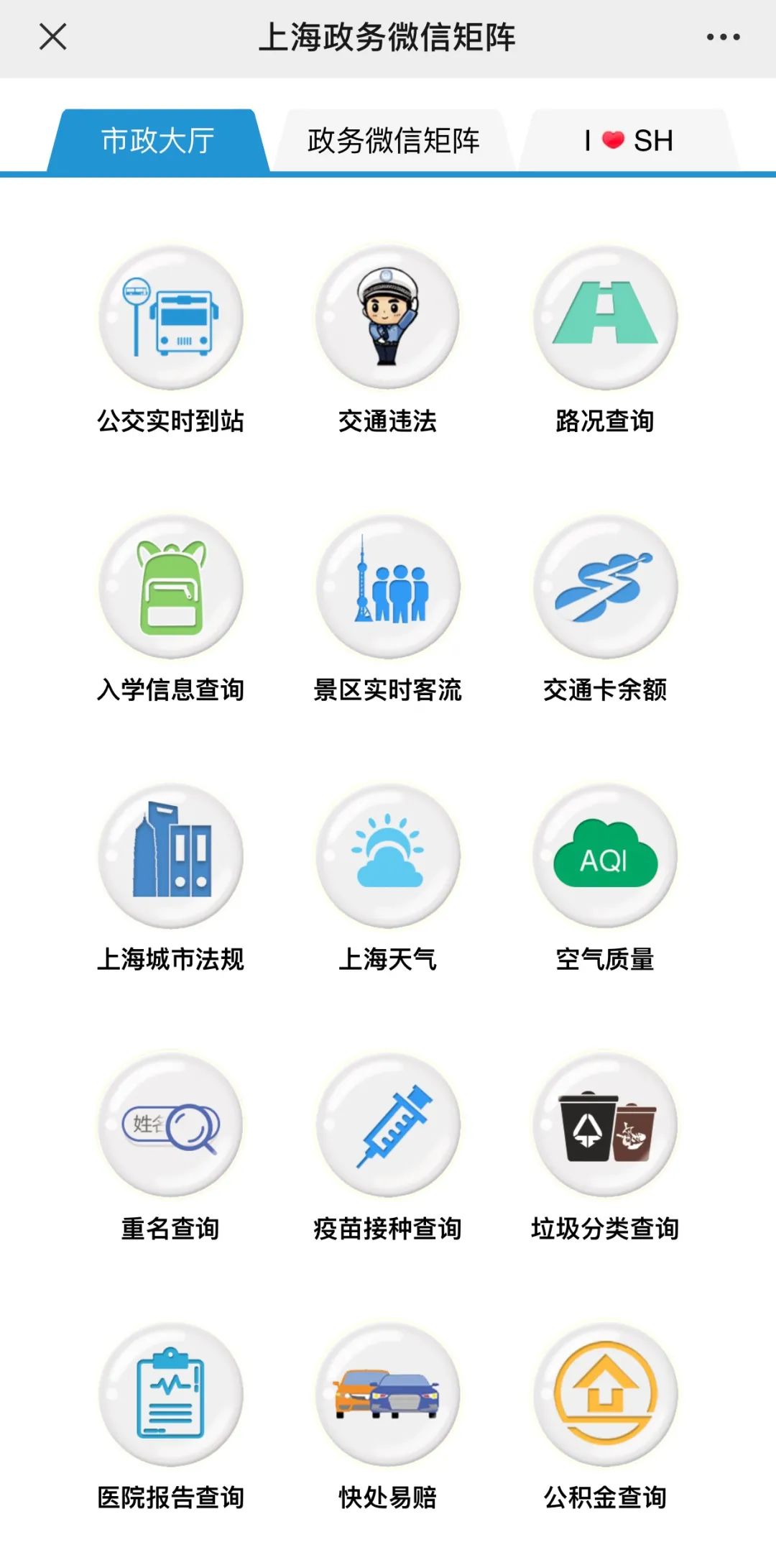 37. 来上海要学会垃圾分类,搞不清分类没关系,关注公众号“上海发布”,选择市政大厅,就可以搜索垃圾分类信息,还有公交到站、路况信息、景区客流、上海天气……都可以在这里一键查询。