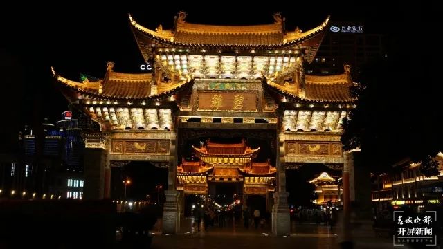 两座牌坊上的灯光亮起,显得格外耀眼