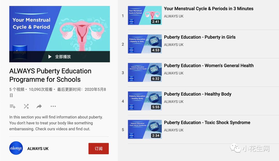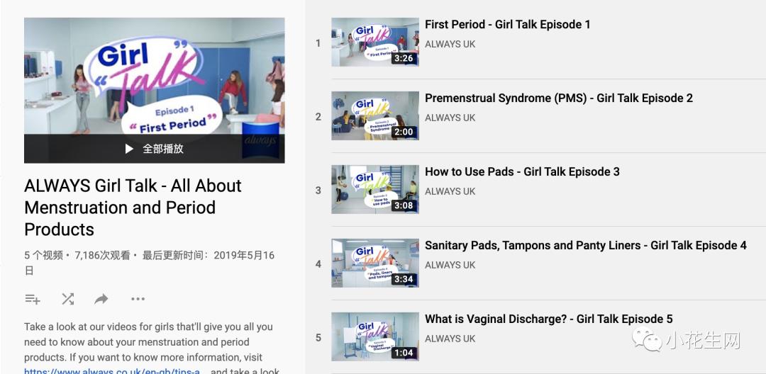 女儿的问题是从白带开始的,但适合儿童看的似乎不多。宝洁 Always(英国的护舒宝)制作了女性卫生类系列短片。