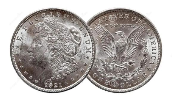 Roman常用来改造的硬币是美国在1878年至1904年间生产的1美元硬币,也称摩根银元,硬币本身长下面这样: