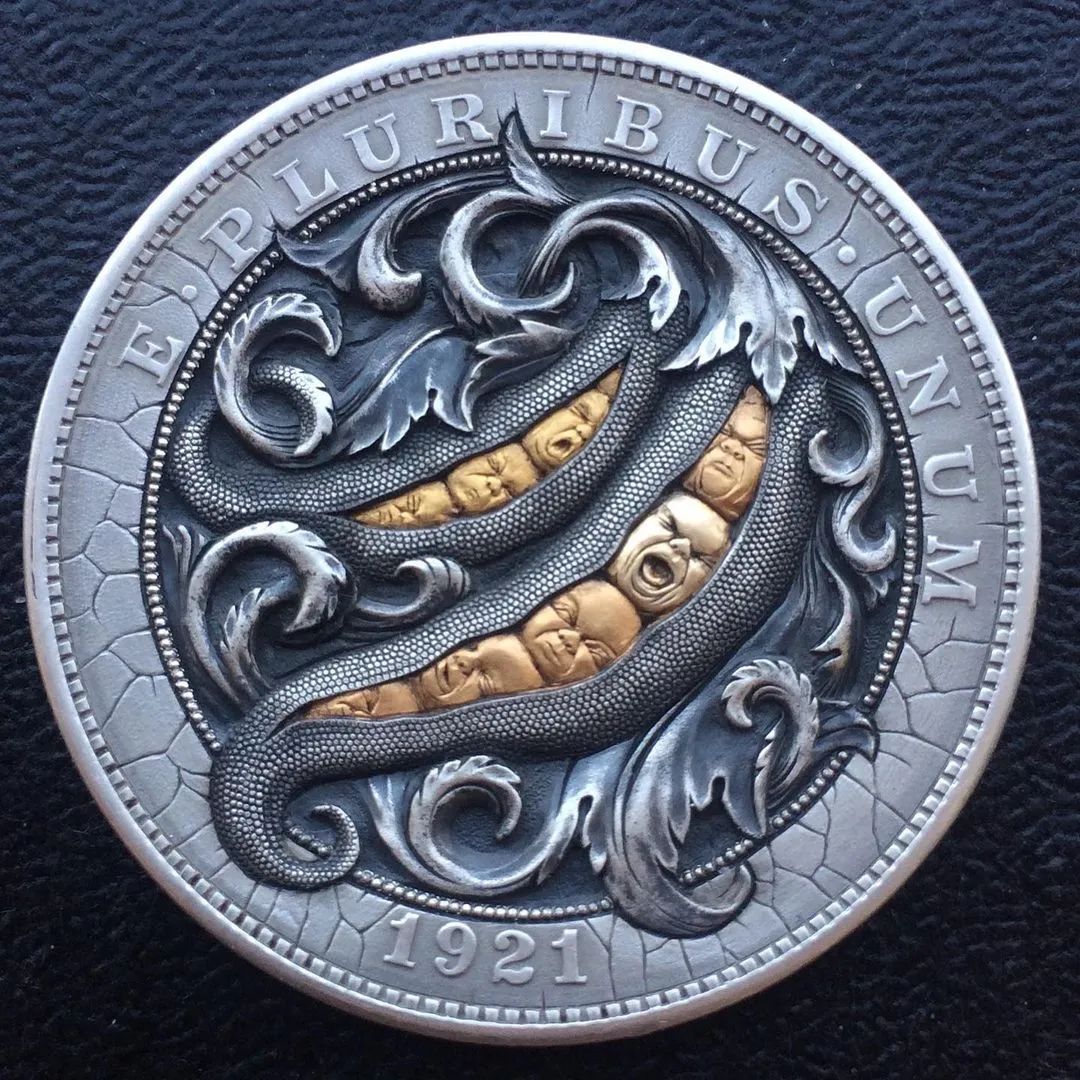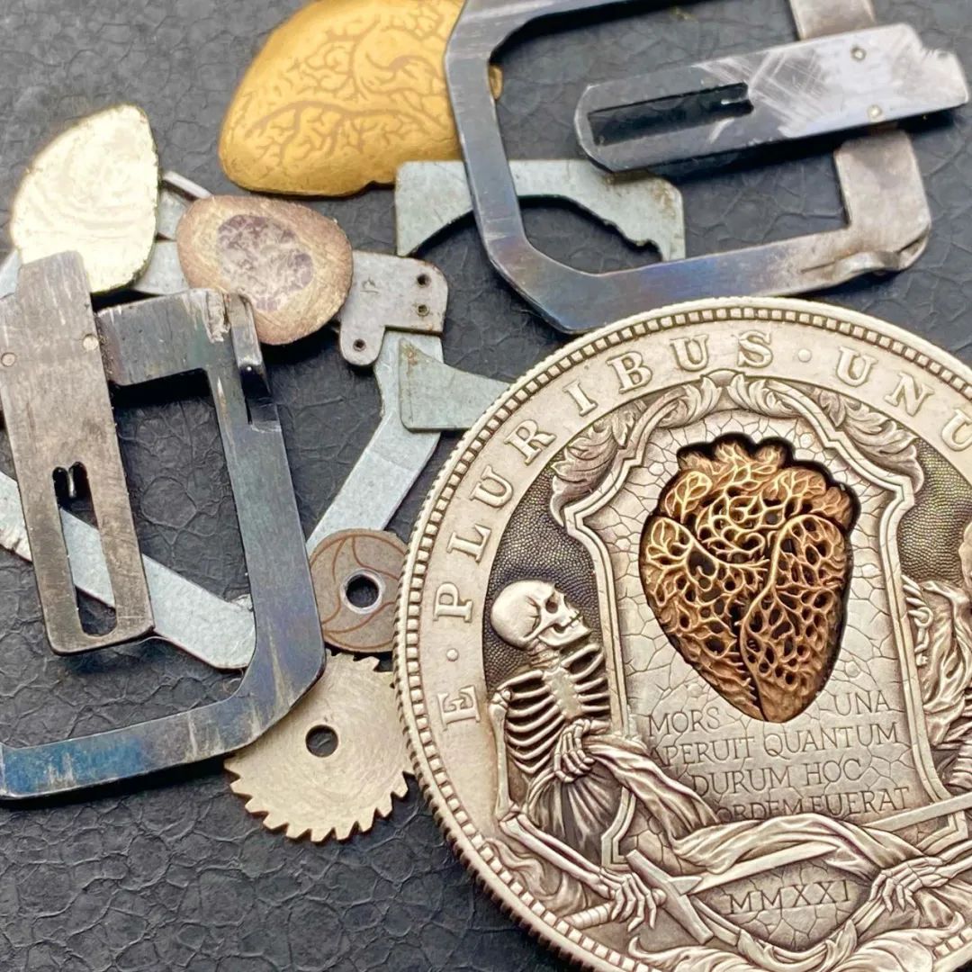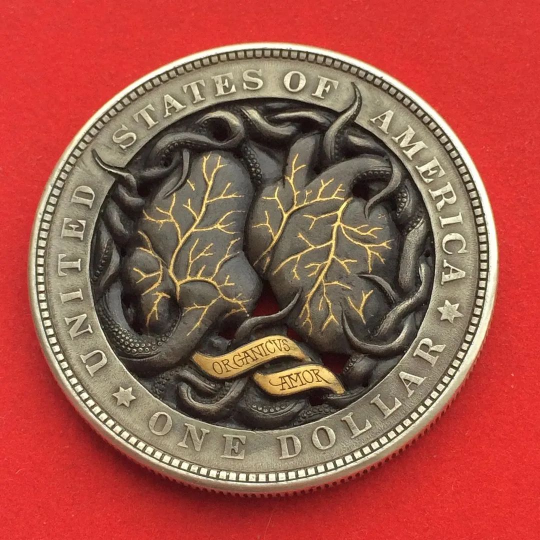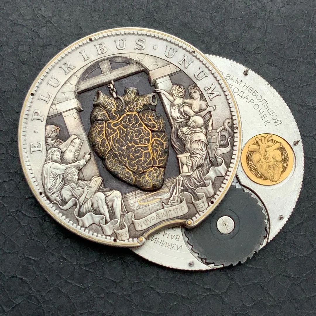来自俄罗斯的Roman Booteen就是这样一位把硬币玩出满满艺术感的人:经他改造后的硬币,价格翻了又翻,最夸张的一枚硬币曾卖出了10101美元的天价(约合人民币65000元左右)。