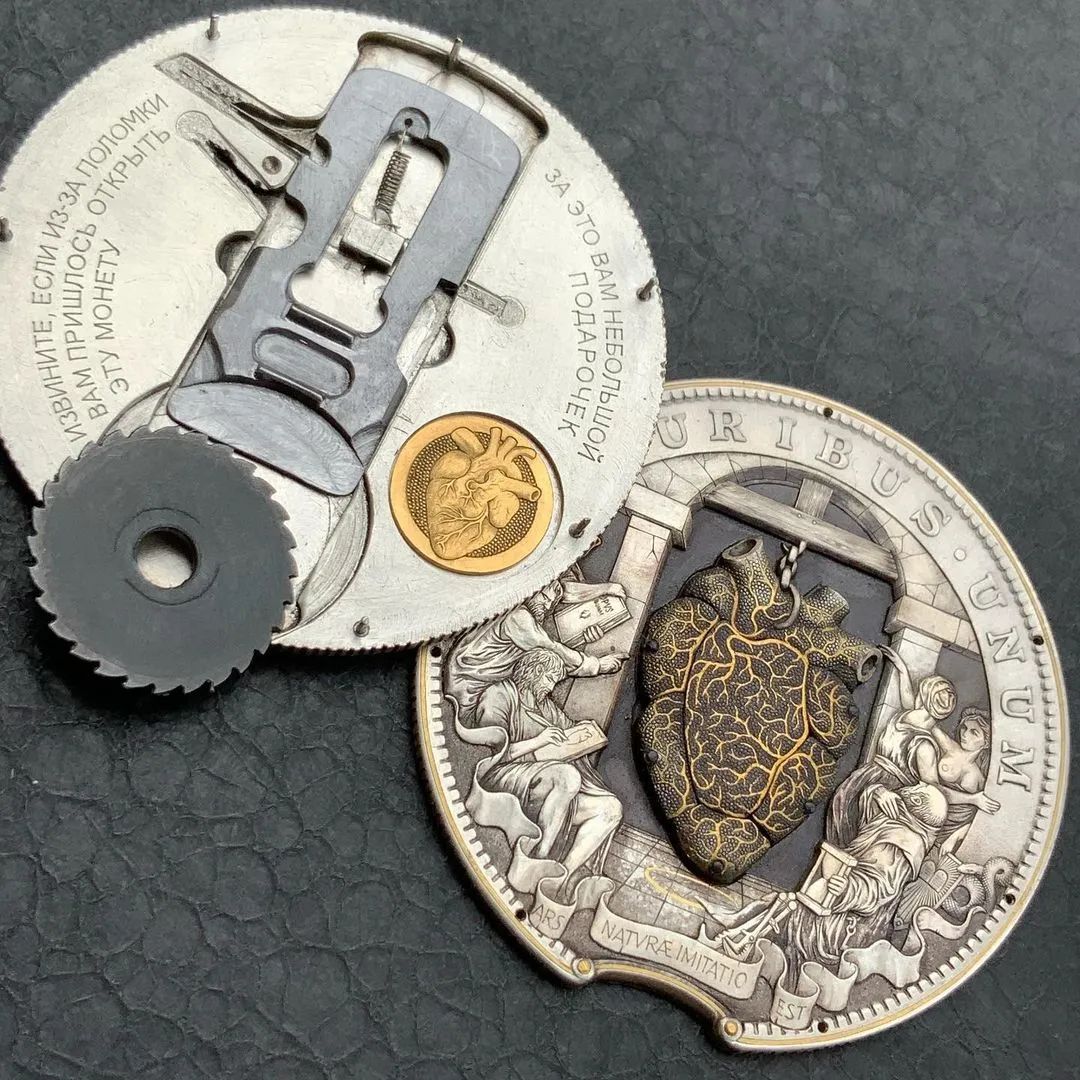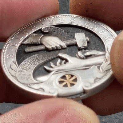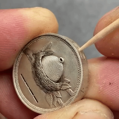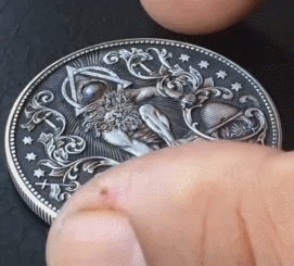 看完这些,可能有的人会觉得:就这?手艺精湛点的说不定都能雕出来,几千块钱挺值,但一个硬币卖几万有点夸张吧。然而,Roman制作的硬币其实远不止此,他做的硬币,竟然可以动!