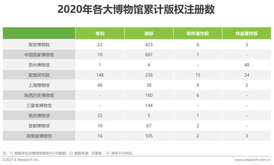 文化创意产业的发展离不开良好的知识产权保护生态,近年我国知识产权保护环境不断优化,一方面从政策上我国逐渐建立健全保护机制,另一方面从社会认知上,我国企业也更多利用知识产权来保护自身权益。可以看到从2015年到2020年国家版权登记数量年复合增长率达25%,从作品著作权分类占比看,影视作品和美术作品占比不断提高。对于博物馆来说,突出表现为较高商标注册量背后的多领域商标覆盖,以及各家不同领域版权占比的差异化所代表的商业化发展战略。
