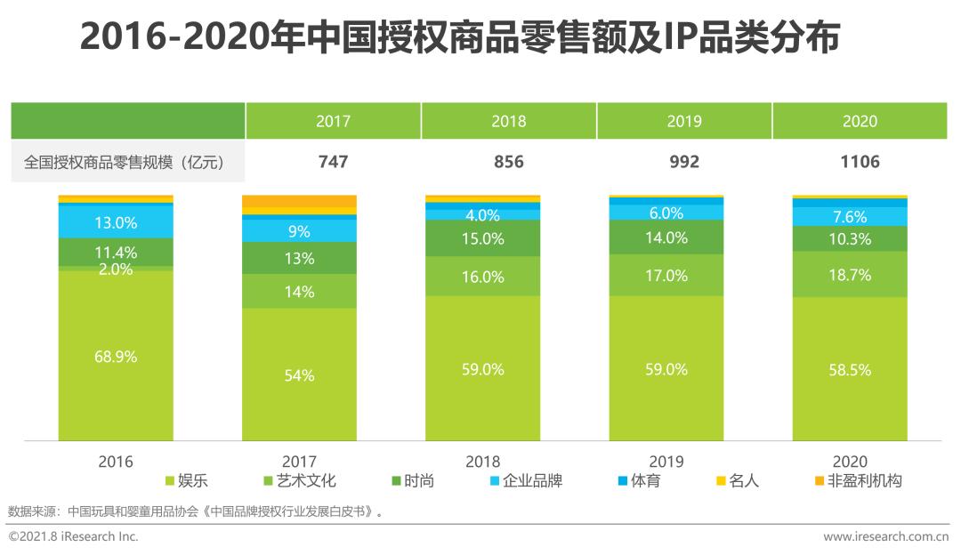 据中国玩具和婴童用品协会报告显示,2020年我国年度被授权商品零售额1106亿元人民币,同比增长11.5%,授权金41.5亿元,同比增长8.6%,其中授权市场IP品类中艺术文化占比达18.7%,较2016年上涨8倍,调研中2020年有41.6%的95后消费者年度购买授权产品或IP主题体验4-6次,92.9%的95后消费者购买授权产品的价格高于同类产品,IP对年轻人的吸引力强。近年博物馆IP加速跨界创新,通过授权、联名等方式触达更多用户,在提振消费的同时,增加与用户的互动与曝光,特别是吸引年轻人的注意力,从而塑造更有价值的IP品牌。