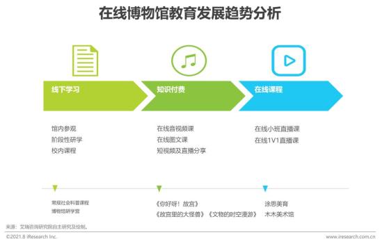 博物馆是保管、研究和传播珍贵文化的集中地,文化包罗万象,博物馆所拥有的教育内容具有强延展性,是一个融合学科,可以涉及到历史学、美学、语言学、自然科学、社会学等等,在强调素质教育和基础教育的当下,博物馆教育在互联网的加持下不仅可以创造更多元学习模式,且能够充分代表新一代的更具有竞争力的素养教育,其中线上博物馆教育还处在探索阶段,正逐渐从侧重科普性质的“知识付费”向成体系化的“在线课程”发展,未来有望开辟一种新的在线教育品类。