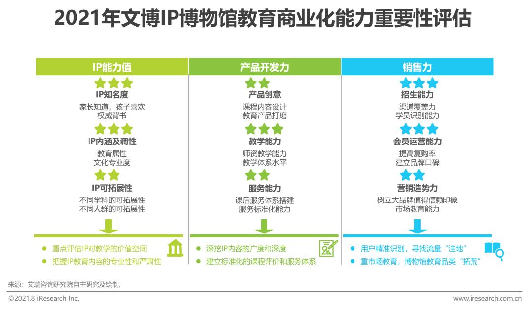 文博IP具有很强的教育内容和范围,同时也具备多学科、多领域、多人群的兼容和覆盖性,对于博物馆教育来说,要重点评估文博IP对教学目标的匹配度和对教育产品推广的支持和赋能力;目前博物馆教育仍是初期阶段,行业玩家在产品开发阶段要深挖IP内容的广度和深度,重点建立起博物馆教育的体系,为实现规模化做准备;同时在销售端,市场仍需教育,第一批行业玩家将通过寻找流量“洼地”,实现博物馆教育品类“拓荒”。
