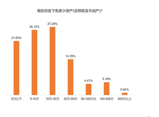 超7成“90后”职场人名下资产不超过30万。其中,“10万-30万”占比最高,为27.29%;其次是“5万-10万”,占比26.12%;再者是“5万以下”占比21.65%。名下资产超过30万的“90后”职场人占约1/4。