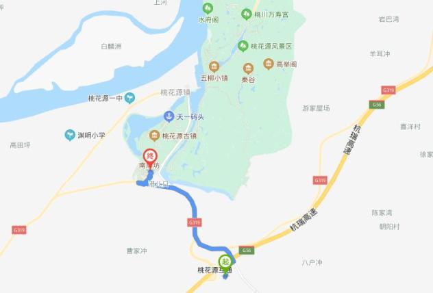 1号线:桃花源游客中心→五柳小镇(步行至景区南门,进入桃花源景区。)