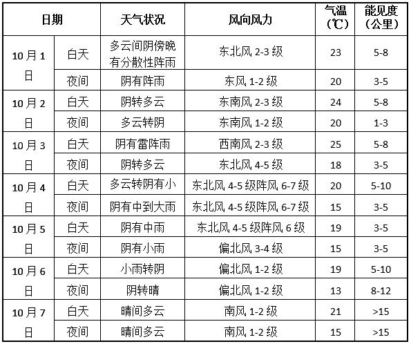【国庆假期期间,天津多降雨天气】预计2021年国庆假期(1日至7日)天津多降雨天气过程。其中,1日夜间有阵雨;3日白天有雷阵雨;4-6日有连续性降雨过程,累计雨量较大,伴有4~5级阵风6~7级东北风。(详情)