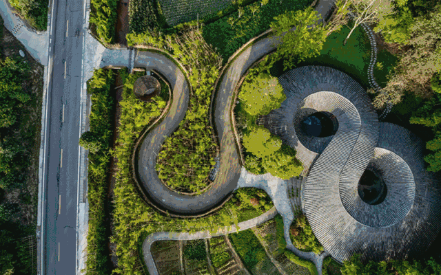 青瓦白墙、石柱木板的中国传统建筑风格,