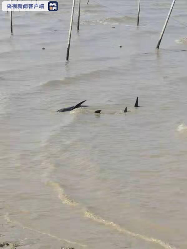 今天(30日)上午,在浙江省慈溪市新浦镇海涂,当地渔民发现12条海豚搁浅,经当地各部门全力救助,目前12条海豚全部脱困,游回大海。