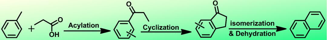 示意图2:甲苯与丙酸在M-Z5-17上的反应路径。偶联反应中芳烃合成的反应机理