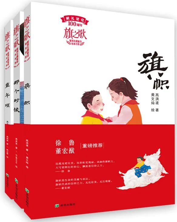 “旗之歌爱国主题童诗绘本书系”在中国共产党诞生100周年的重要时间节点,选取高洪波的三首爱国主义诗歌,分别是《那个时候》《童年颂》和《旗帜》。这套丛书用绘本这一最能培育儿童审美、最为儿童喜闻乐见的形式,向儿童形象生动展示新中国和中国共产党诞生的伟大意义。三首诗层层递进,从不同角度展示了中国共产党带领全国人民推翻三座大山、建立新中国、建设小康社会的艰辛与伟大。