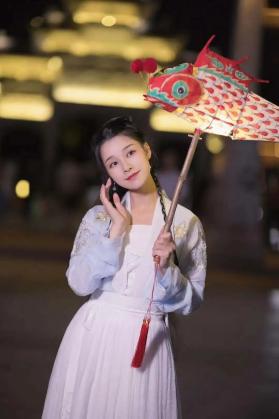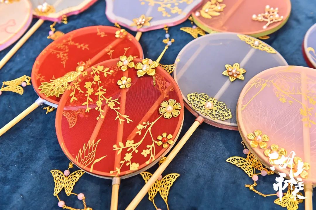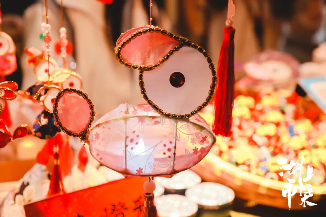 穿了汉服怎能少得了配饰?团扇作为中国传统工艺品,小巧精致,再通过摊主的巧手缀以刺绣或饰品或其他精美图案,这一把把团扇就成为了你的“私人订制”;再提上一个美美的兔子灯,氛围感绝了。