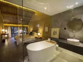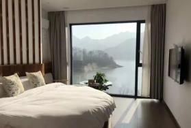 所有的房型都是朝南正对一线湖景,采用全落地玻璃,躺在床上湖景也是一揽无余。