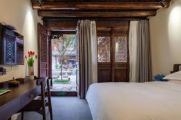 沿着木质的楼梯拾阶而上,感受木质带给你的温度与厚度。每一个房间都是主人设计,把最民族的、古朴的元素融入于此,与大自然融于一体。