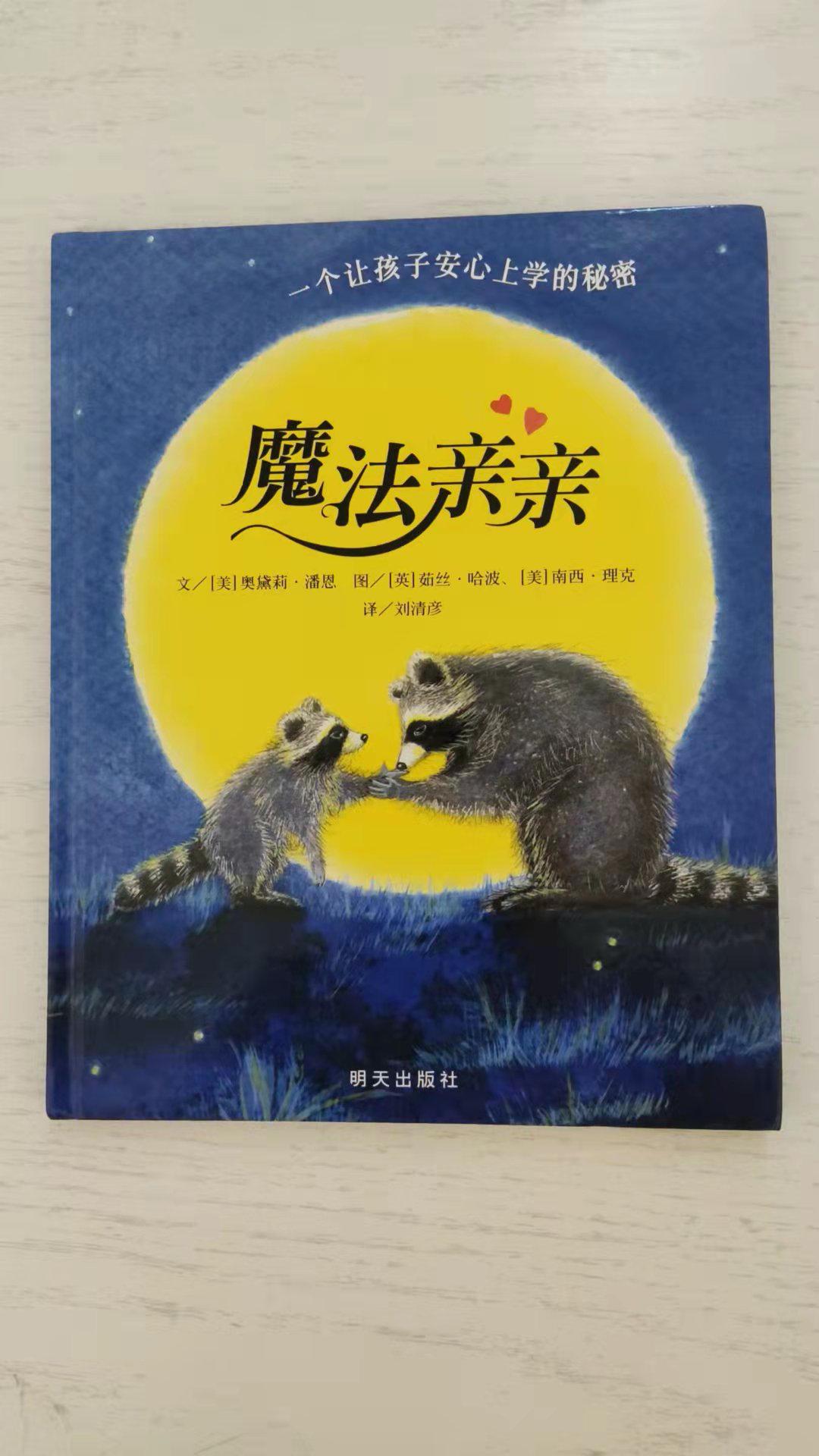 图片来源:作者提供这里要重点推荐一下(不是广告)这本《魔法亲亲》,大概情节是小浣熊要去幼儿园了,浣熊妈妈送给它「魔法亲亲」,陪伴它开开心心地去幼儿园。里面的文字表述细腻而不抽象,平实而又有趣,画面上亦是细节满满。读到深处,我自己都得忍忍泪花儿再往下念。