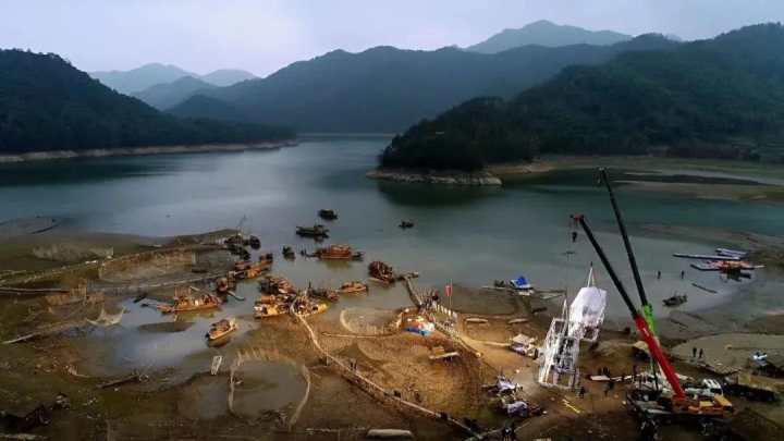 2020年11月,《长津湖》摄制组在天台寒山湖拍摄的情景。 浙江新闻 图