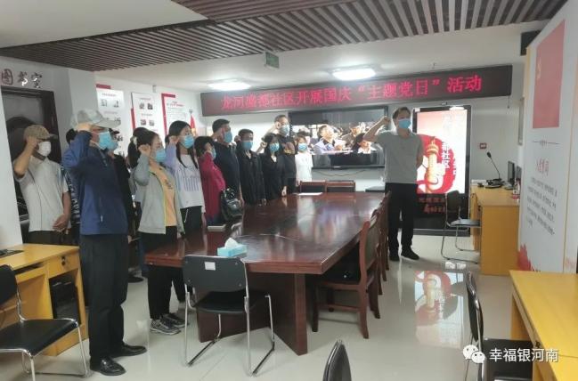 为进一步加强革命历史教育,重温红色经典,9月30日,银河南路街道龙河盛都社区开展“国庆”主题党日活动,活动期间全体党员首先在鲜艳的党旗下庄严宣誓,重温入党时庄严承诺和坚定决心。随后组织党员观看了红色电影《建国大业》。