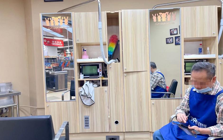 商超10元剪的大爷介绍,这家店铺是北京某大型超市旗下的,他不是老板,只是个领工资的“打工人”。这样的10元剪发店,在北京大部分超市都有。