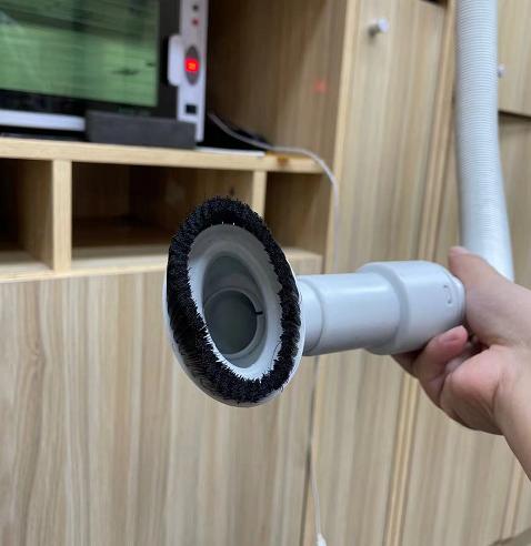 类似早前家里简易吸尘器,吸尘器上方有一些人造毛。大爷一边用毛拨动头上的碎发,然后再使劲按下去把碎发吸进去。