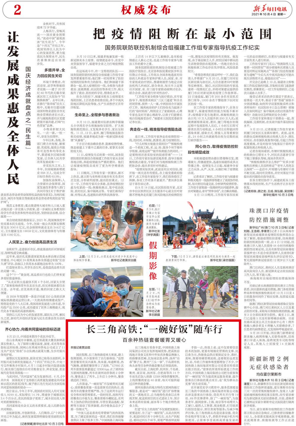 “没想到套餐里有吴兴溪鱼、鱼米羹,味道鲜美,热气腾腾,就像把餐馆带上了高铁。”G7695次列车旅客张英豪通过12306App点了湖州站互联网热链餐,列车在湖州站停靠的2分钟内,餐食送上了列车,上车后5分钟内,餐食就送到了座位。