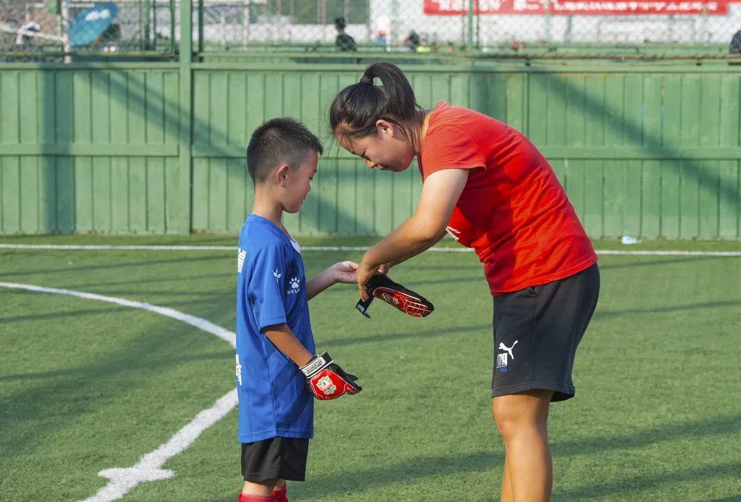 ⚽守门员哥哥忘形出击,助教帮其戴手套 长江日报城市摄影队 邹幼勤 摄