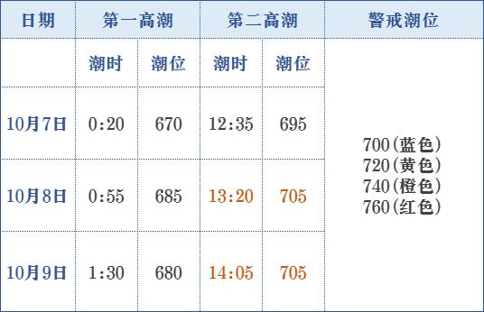 蓝色警戒潮位(700厘米)的高潮位