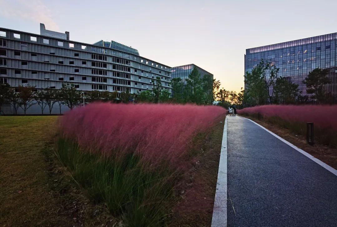 单株看没什么特殊,成片就很漂亮了刚种下时看不出有什么稀奇,进入九月下旬后开始慢慢变色,随着粉色越来越浓郁,整个绿地也会变得好看起来。而到冬天,它们就变成黄色或古铜色的了。花期一般要到11月份。眼前这片已进入最佳观赏期。