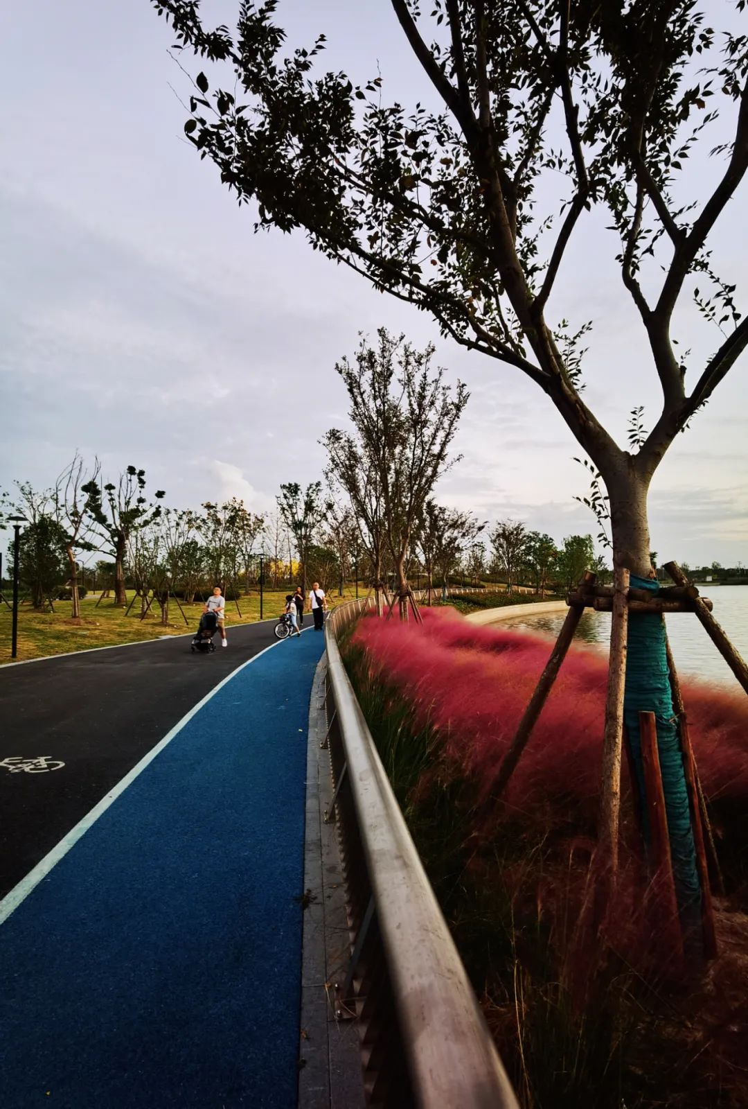 这片粉黛乱子草,景美人少,有吃有喝有停车有大片绿地,可拍照、可骑行、可遛娃、可搭帐篷、可发呆……就在离它不远的地方,兰香湖绿道上,环湖的几大片粉黛乱子草也开得正艳。