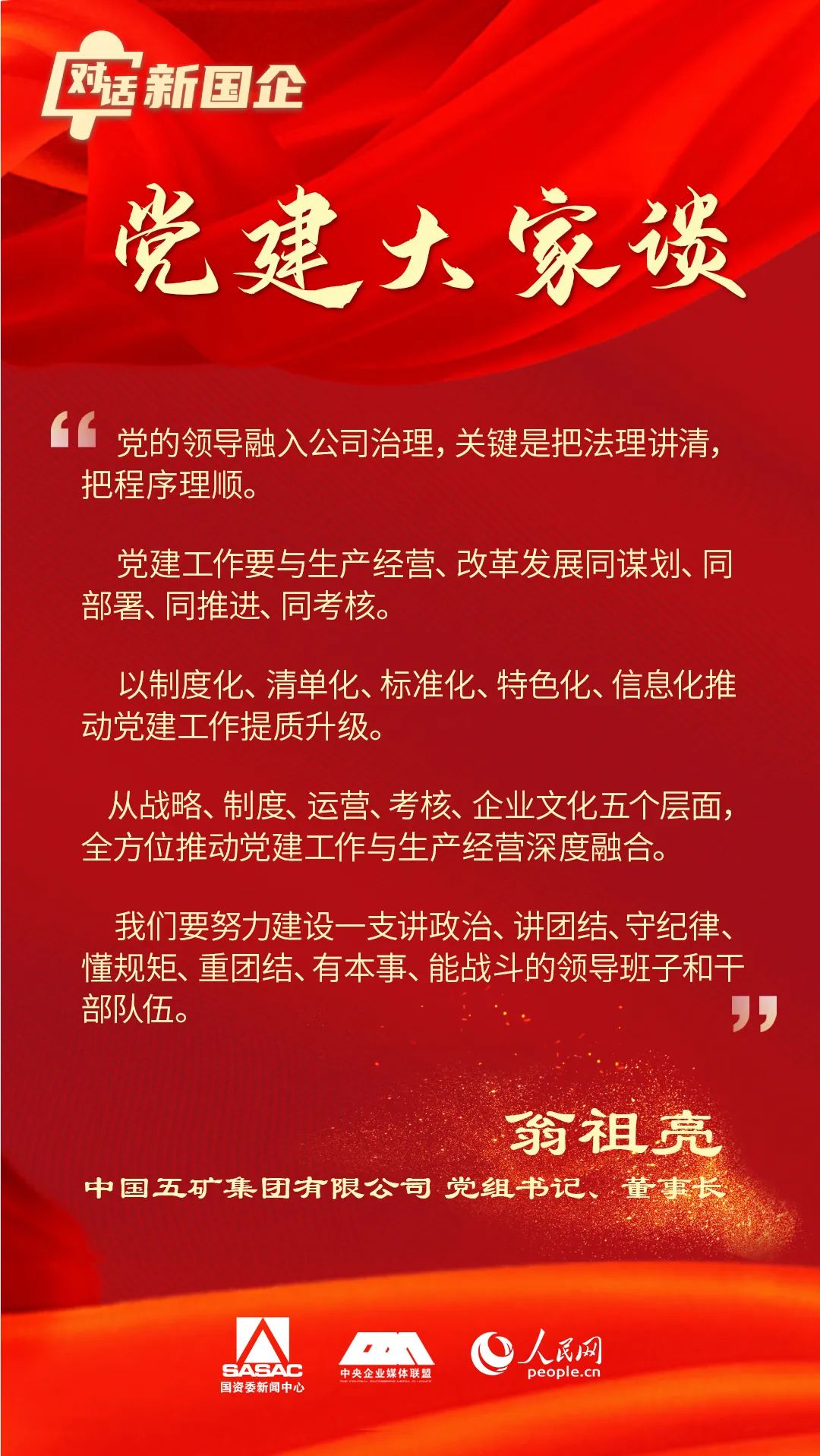对话新国企·党建大家谈 | 中国五矿翁祖亮:党建引领高质量发展 轻装上阵走内涵式发展道路