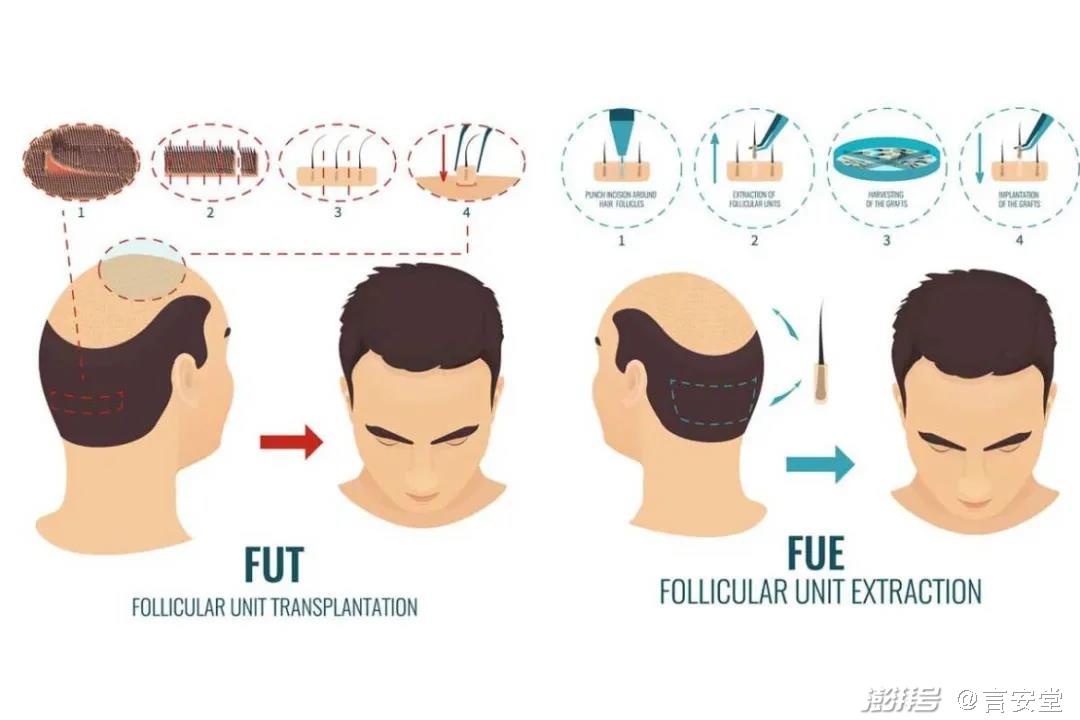 因为FUT术式很容易遗留疤痕,所以现在大多采取的是FUE术式,很多广告里提到的微针植发也就是想表达自己用的是FUE术式。