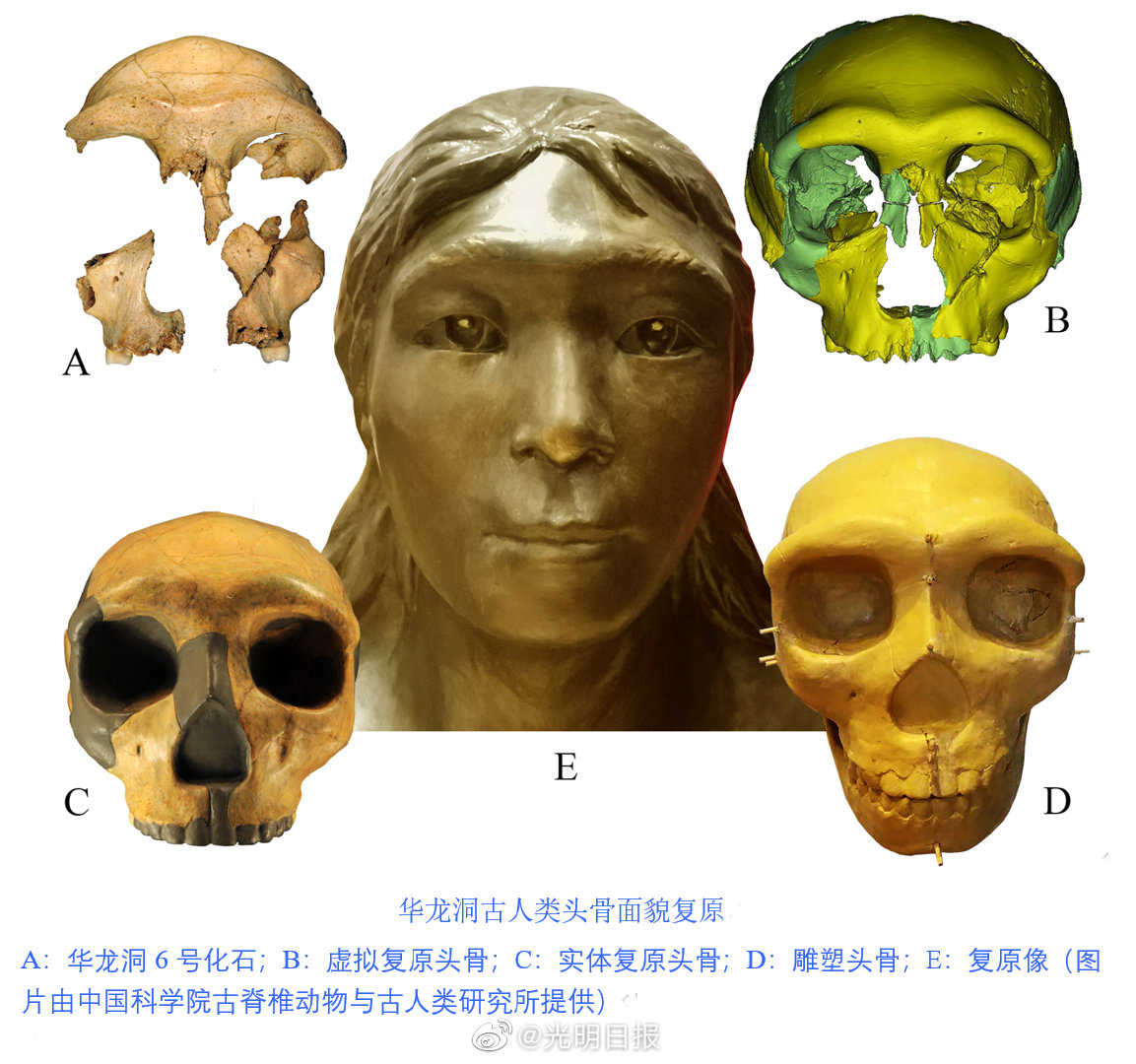 @光明日报10月8日消息,中国科学院古脊椎动物与古人类研究所刘武研究员和吴秀杰研究员领导的中外合作团队,对出土于安徽省东至县华龙洞遗址的古人类面骨化石进行了研究。结果显示,这个生活在30万年前的个体长得更像现代人,多数面部特征位于早期现代人及现代人类变异范围。这说明,东亚地区人类从古老形态向现代形态的演化过渡30万年前已经发生,比以往认识提早了8-10万年。不过疑问仍然存在——最近在非洲的古人类化石发现和研究将现代人出现时间提早到31.5万年前。然而,遗传学研究显示,古老型人类与现代人类谱系的分别时间发生在55-76.5万年前。这一矛盾的解决只能等待更多化石的出土。