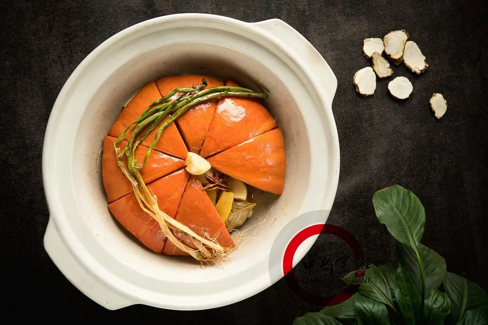 以砂锅油浸的方式,让各种辛香料的味道慢慢渗尽主料中,但不会过分油腻,凸显干香的口感。南瓜口感粉糯甜润中又透着咸香,复合香味突出。