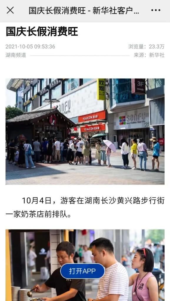 10月5日,新华社以《国庆长假消费旺》为题,以图集形式专门报道天心区步行街、太平街在做好疫情防控的前提下,消费市场火爆的场景。