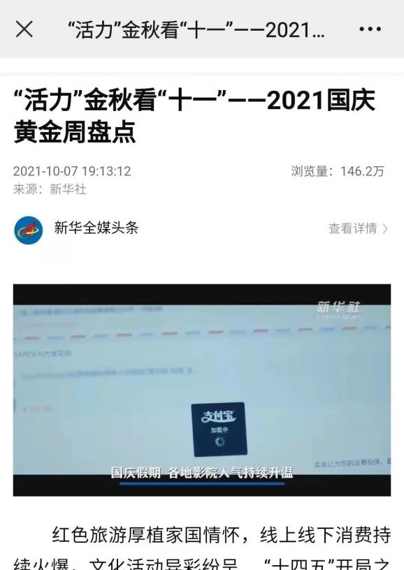 新华社→《“活力”金秋看“十一”——2021国庆黄金周盘点》10月7日,新华社报道全国黄金周盘点,其中报道了天心区五一商圈消费旺盛,“买买买”元素集聚。